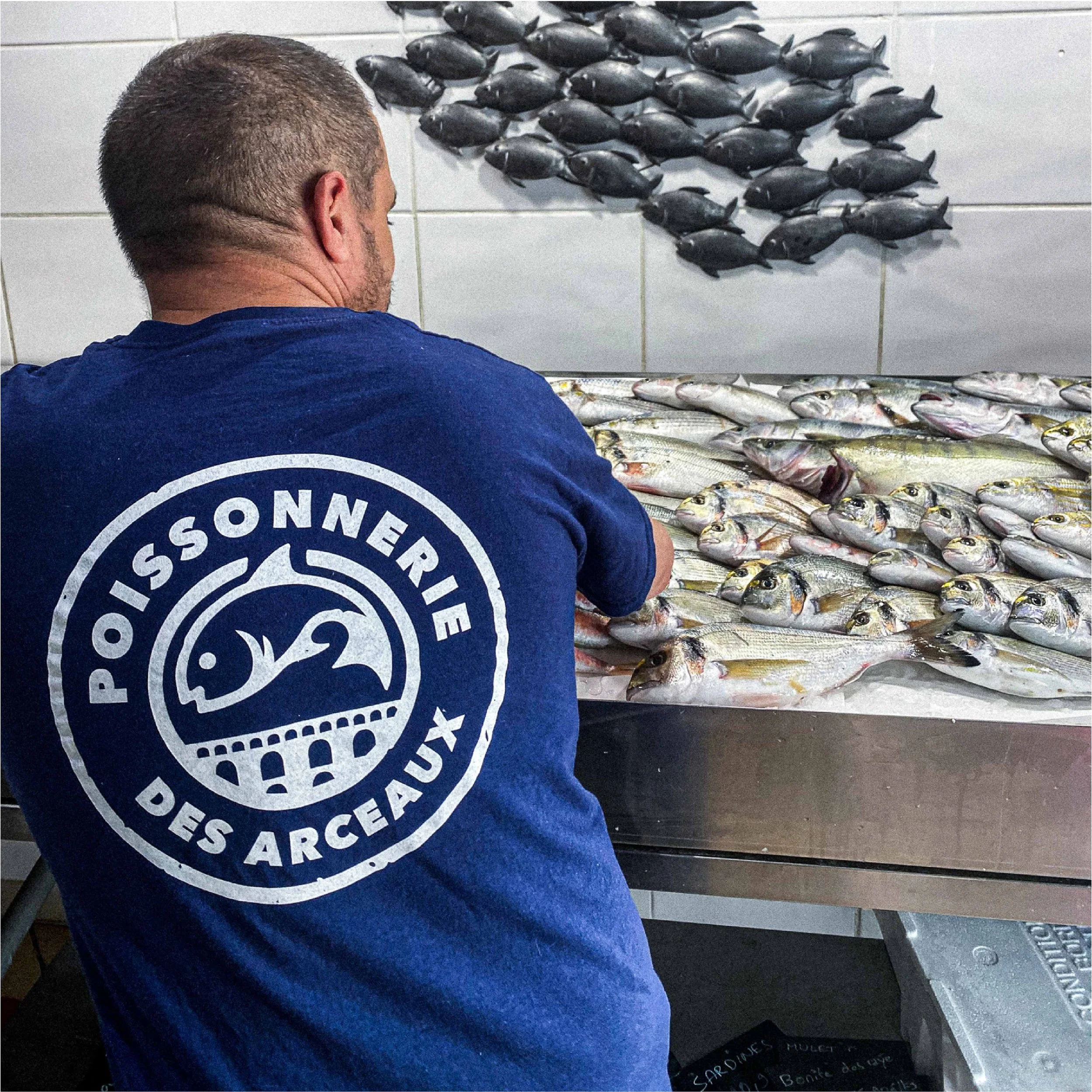 Branding/logo & sérigraphie des tee shirts pour la poissonnerie des arceaux de montpellier